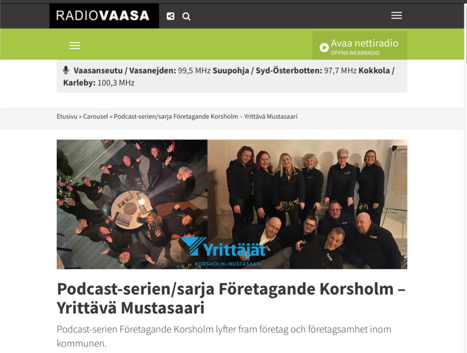 Podcast lähetetään sitten kaksi kerta Radio Vaasassa ja se tulee olemaan saatavilla myös Radio Vaasan ja Mustasaaren Yrittäjien kotisivuilla, Spotifyssa ja somessa.