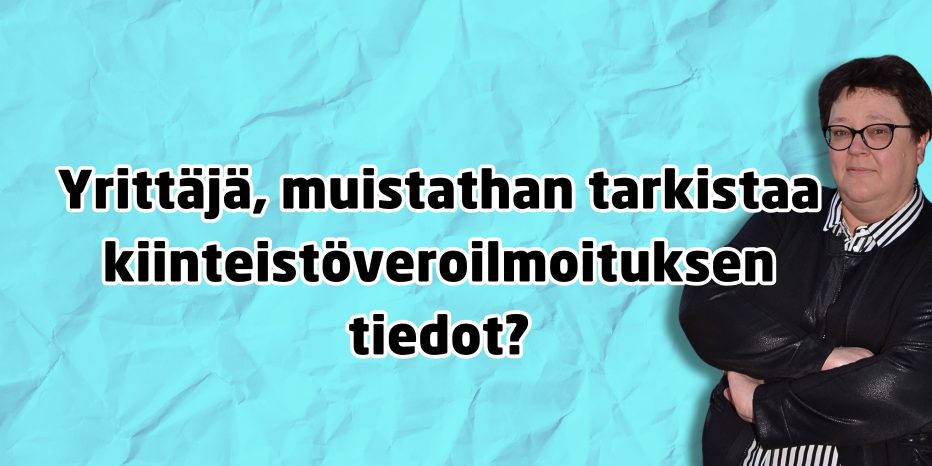 Yrittäjä, muistathan tarkastaa kiinteistöveroilmoituksen tiedot?