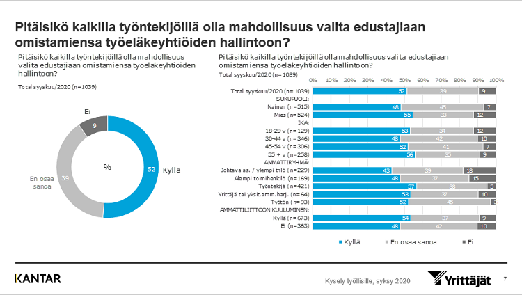 52 % työllisistä haluaa kaikille työllisille mahdollisuuden valita edustaja työeläkeyhtiön hallintoon