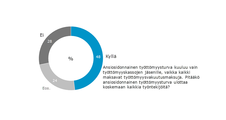 48 prosenttia kansasta haluaa, että ansiosidonnainen työttömyysturva ulotetaan koskemaan kaikkia palkansaajia, ei vain työttömyyskassojen jäseniä. Vain 28 prosenttia vastustaa. – On kysymys oikeudenmukaisuudesta. Ansiosidonnainen työttömyysturva kuuluu kaikille, ei vain kassojen jäsenille, koska kaikki myös sitä rahoittavat, Suomen Yrittäjien toimitusjohtaja Mikael Pentikäinen sanoo.