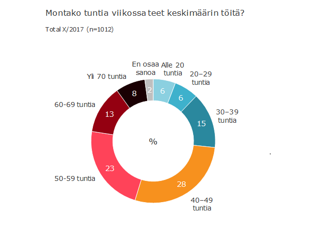 Yrittäjien työpäivät ovat pitkiä: Lähes puolet tuoreeseen Yrittäjägallupiin vastanneista yrittäjistä (44 %) tekee yli 50-tuntista tai sitä pidempää työviikkoa. Alle 40-tuntista työviikkoa tekee 27 prosenttia haastatelluista. Kahdeksalla prosentilla vastaajista työviikko venyi yli 70 tuntiin.