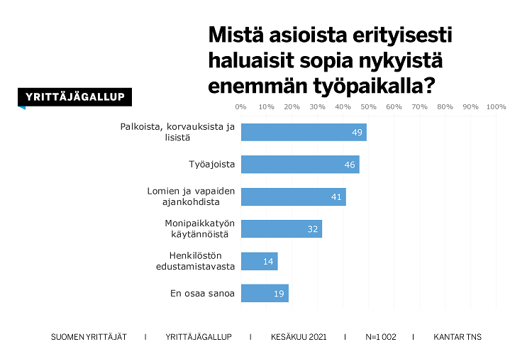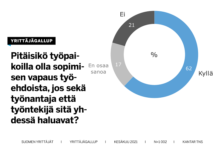 Tiedot käyvät ilmi Työelämägallupista, jossa Kantar kysyi Yrittäjien pyynnöstä työllisiltä – palkansaajat, lomautetut, työttömät ja yrittäjät – työpaikkasopimisesta. Vastaajia oli 1002.