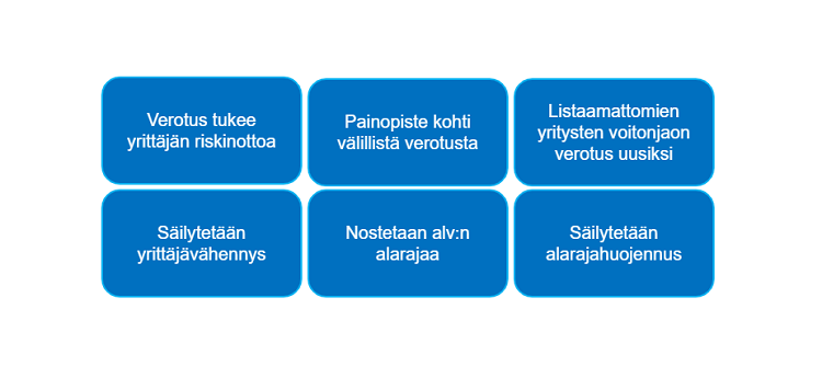 Työn ja yrittämisen verotusta ei pidä kiristää, ja verotuksen painopistettä on siirrettävä kohti välillistä verotusta, linjaa Suomen Yrittäjät verotuksesta tulevalle hallituskaudelle.
