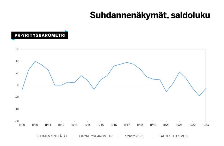 “Taloustunnelmat pk-yrityksissä ovat yhä vaisut. On silti tärkeää huomata varovainen käänne parempaan, koska Venäjän hyökkäyssodan ja energiakriisin vaikutukset ovat selvästi tasaantuneet. Myönteistä on myös, että pk-yritykset pyrkivät pitämään nykyisestä henkilöstöstään kiinni”, toteaa johtaja, pääekonomisti Juhana Brotherus Suomen Yrittäjistä.