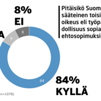 Alle kolmannes yrittäjistä on tyytyväisiä alansa työehtosopimuksiin. 84 prosenttia yrittäjistä on sitä mieltä, että työpaikoilla pitäisi olla oikeus sopia toisin…