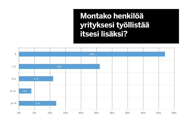 Kyselyyn saatiin 528 vastausta. Vastanneista 47 prosenttia on yksinyrittäjiä, 37 prosentilla vastaajista on 1–5 työntekijää. Vain 12 prosentilla vastaajista on töissä yli 10 työntekijää.