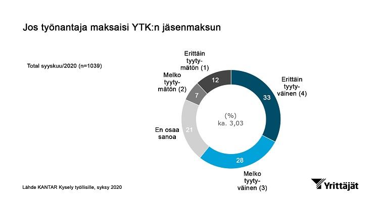 Kantar TNS kysyi Suomen Yrittäjien toimeksiannosta työelämässä olevilta, mitä mieltä he olisivat, jos työnantaja tarjoaisi työsuhde etuna sen, että maksaisi työntekijän puolesta tämän jäsenmaksun Yleiseen työttömyyskassaan (YTK). 33 prosenttia vastaajista olisi erittäin tyytyväinen ja 28 prosenttia melko tyytyväinen. Tyytymättömiä oli huomattavasti vähemmän: erittäin tyytymättömiä olisi 12 ja melko tyytymättömiä seitsemän prosenttia vastaajista.