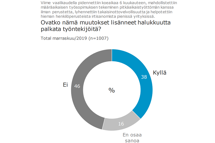 38 prosenttia yrityksistä koki, että viime vaalikauden muutokset auttoivat työllistämään