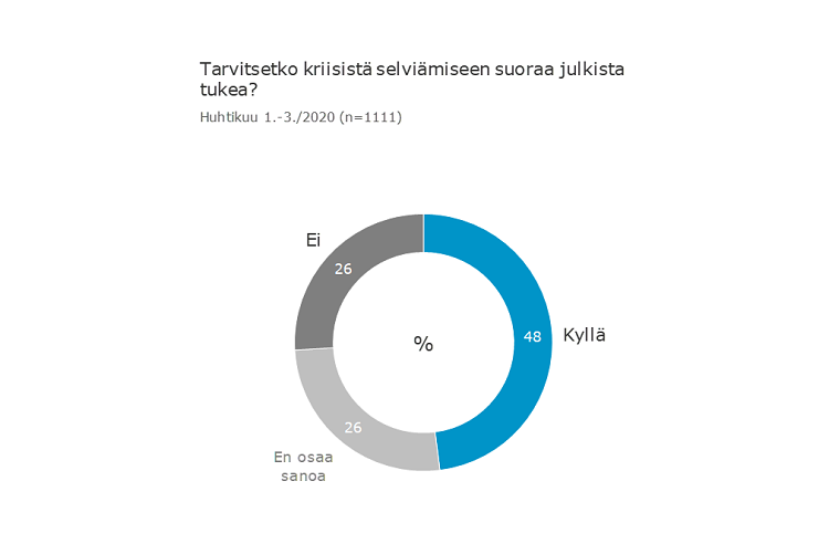 Yrittäjägallupissa tutkittiin nyt ensimmäisen kerran yritysten tuki- ja rahoitustarpeita. Lähes joka toinen yritys kokee tarvitsevansa ja aikoo myös hakea suoraa julkista tukea.