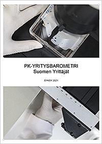 Suomen Yrittäjät, Finnvera ja työ- ja elinkeinoministeriö tekevät kaksi kertaa vuodessa Pk-yritysbarometrin, joka kuvaa pienten ja keskisuurten yritysten toimintaa ja taloudellista toimintaympäristöä. Syksyn 2021 Pk-yritysbarometri perustuu 4 600 pk-yrityksen vastauksiin. Se kuvaa siten kattavasti suomalaisten pk-yritysten käsityksiä taloudellisen toimintaympäristön muutoksista sekä yritysten liiketoimintaan ja kehitysnäkymiin vaikuttavista tekijöistä.