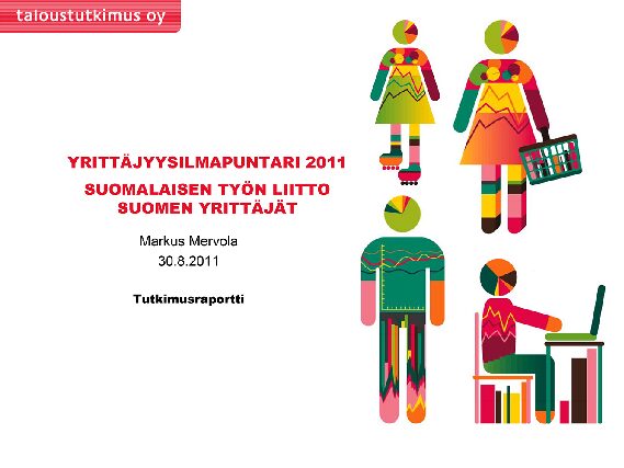 4.10.2012 ESIPUHE Suomessa yrittäjät ovat keskimäärin hieman vanhempia kuin kollegansa muissa EU-maissa. Tilastokeskuksen Työvoimatutkimuksen mukaan 55–74 -vuotiaiden yrittäjien osuus yrittäjäkunnasta…