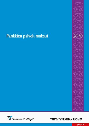 31.12.2010 Suomen Yrittäjien tekemässä vertailussa on tarkasteltu pankkien listahintoihin perustuvia palvelumaksuja alkuvuodesta 2010 tehdyllä kyselyllä pankeille (Nordea, OP-Pohjola, Sampo Pankki,…