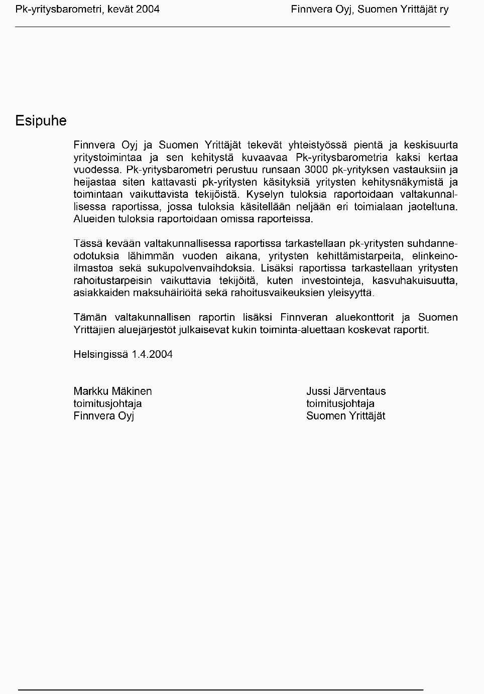 1.4.2004 Tiivistelmä tuloksista Pk-yritykset uskovat kasvun kiihtyvän Pk-yritykset uskovat suhdanteiden paranevan selvästi ja liikevaihdon kasvun kiihtyvän seuraavan vuoden aikana. Myös…