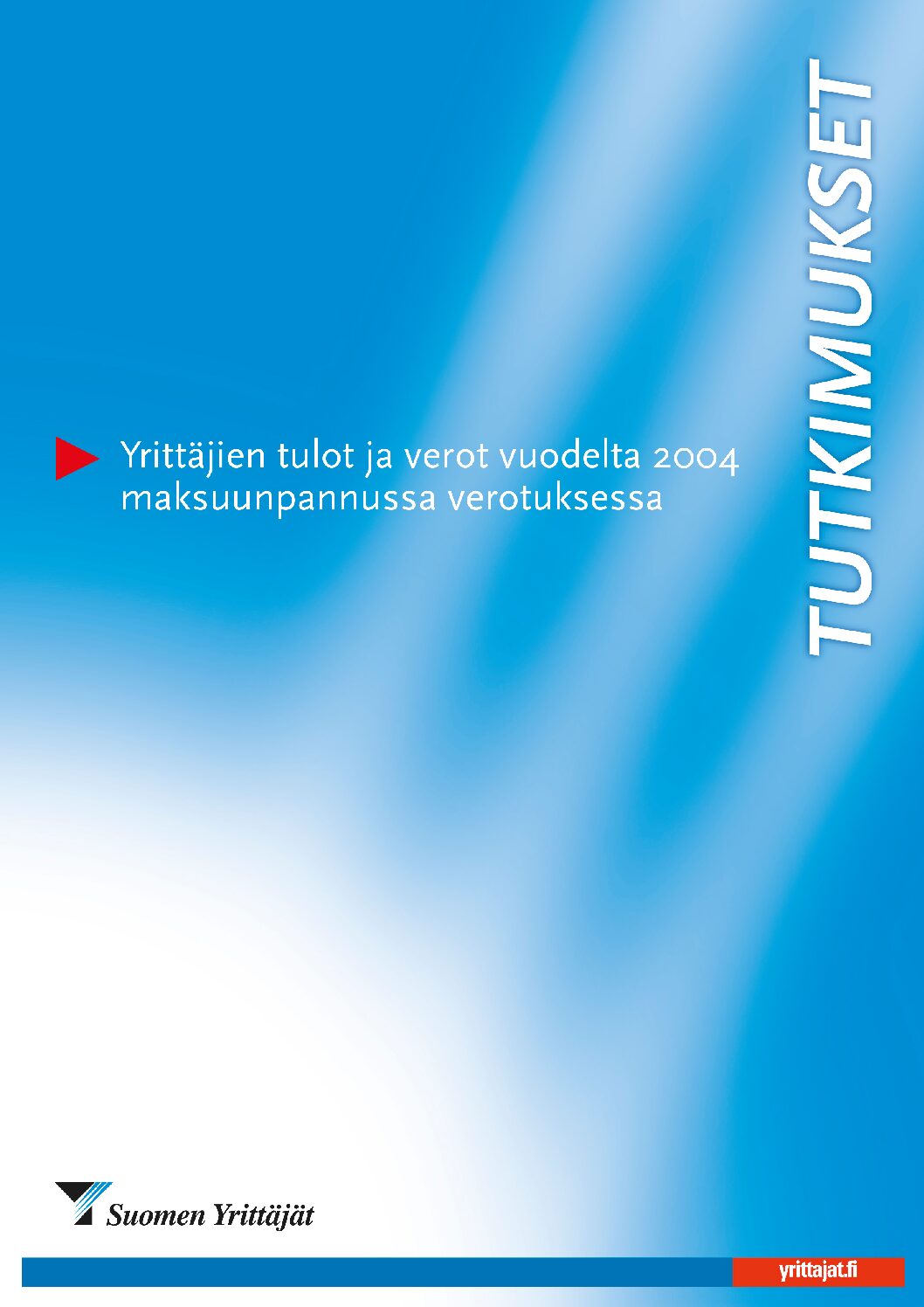 31.12.2004 YHTEENVETO Yrittäjän keskimääräiset veronalaiset pääoma- (28%) ja ansiotulot (72%) vuonna 2004 olivat 37.708 euroa. Nettopääomaa tarvitaan yritykseen noin kymmenkertainen…