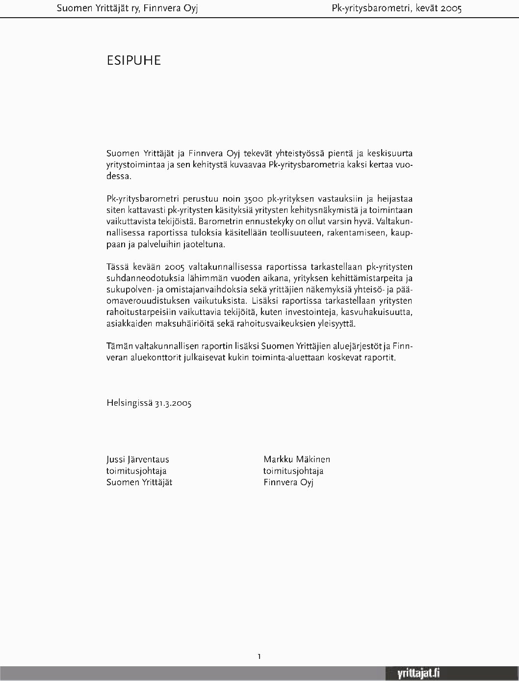 31.3.2005 Tiivistelmä tuloksista Pk-yritysten suhdannenäkymät yhä suotuisat Pk-sektori odottaa suhdanteiden jatkuvan melko vahvoina seuraavan vuoden aikana. Kyselyyn vastanneista lähes 3…
