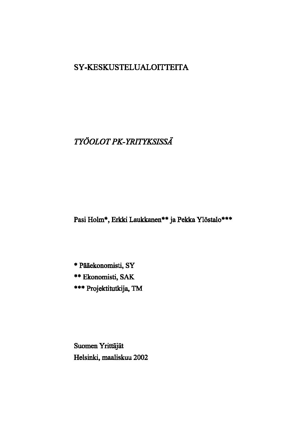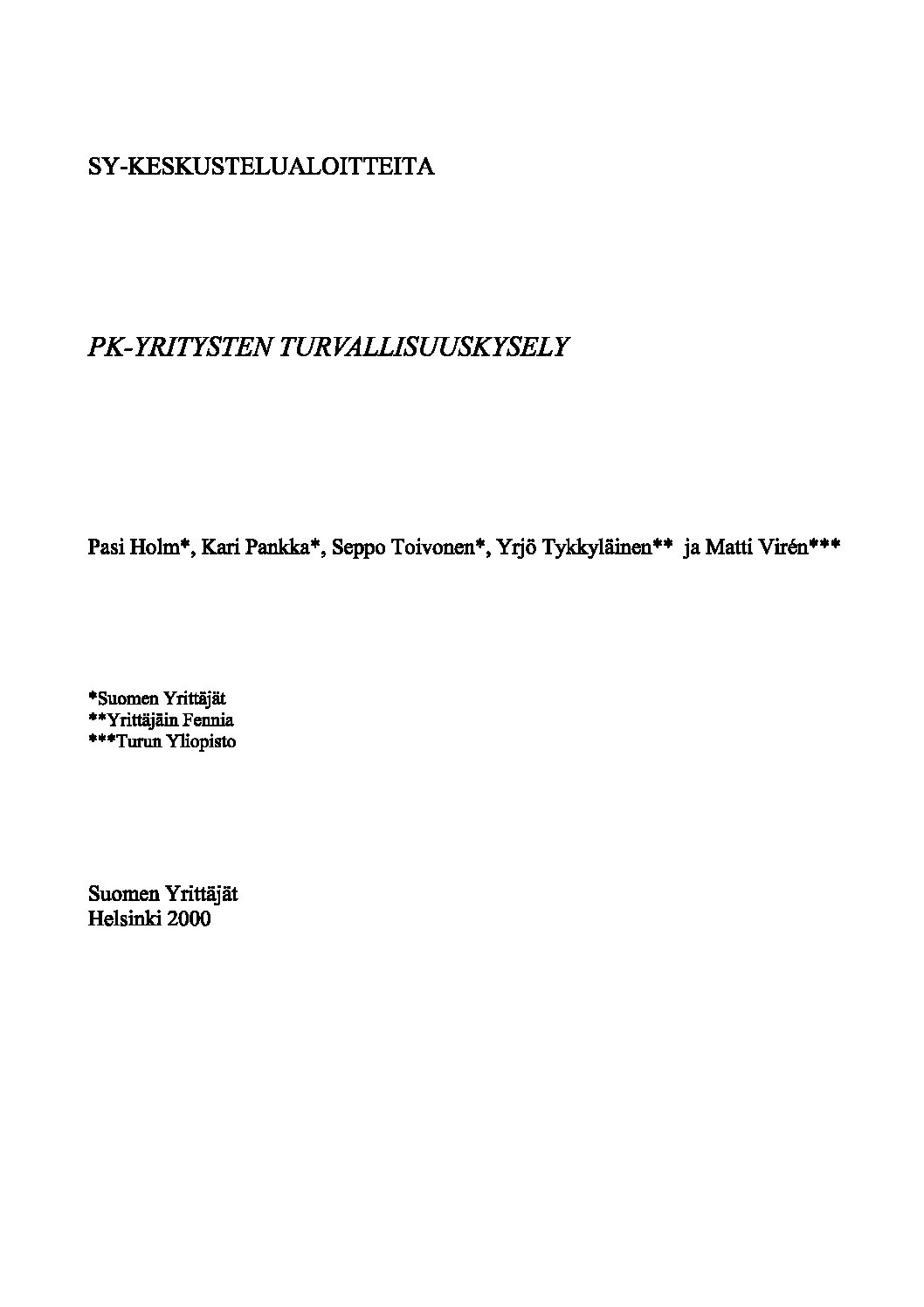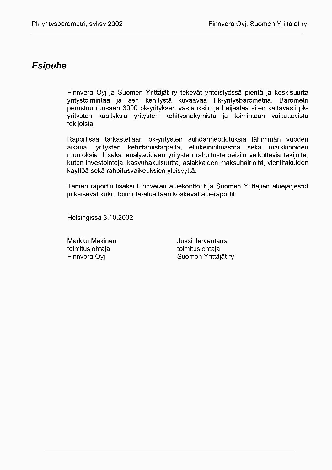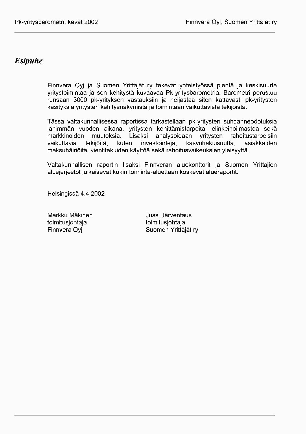 3.5.2001 Esipuhe Kauppa- ja teollisuusministeriön (KTM) tekee yhteistyössä Suomen Yrittäjien (SY) kanssa pientä ja keskisuurta yritystoimintaa ja sen kehitystä kuvaavaa…