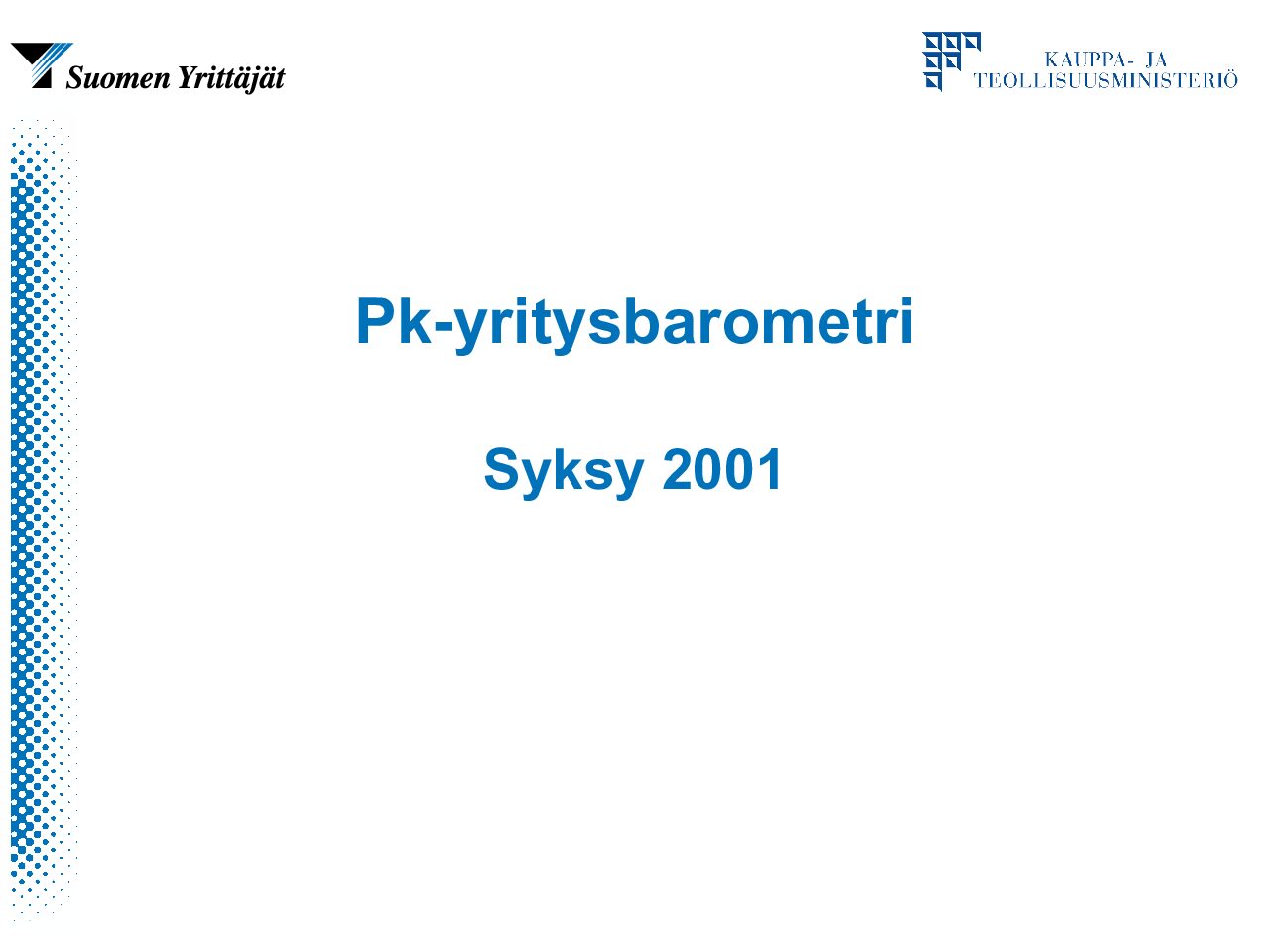 26.9.2001 Tiivistelmä tuloksista Kasvu hidastuu, mutta pääosin kotimarkkinoilla toimivien pk-yritysten luottamus on yhä verraten hyvä Pk-yritysten arviot suhdannenäkymistä ennakoivat talouskasvun…