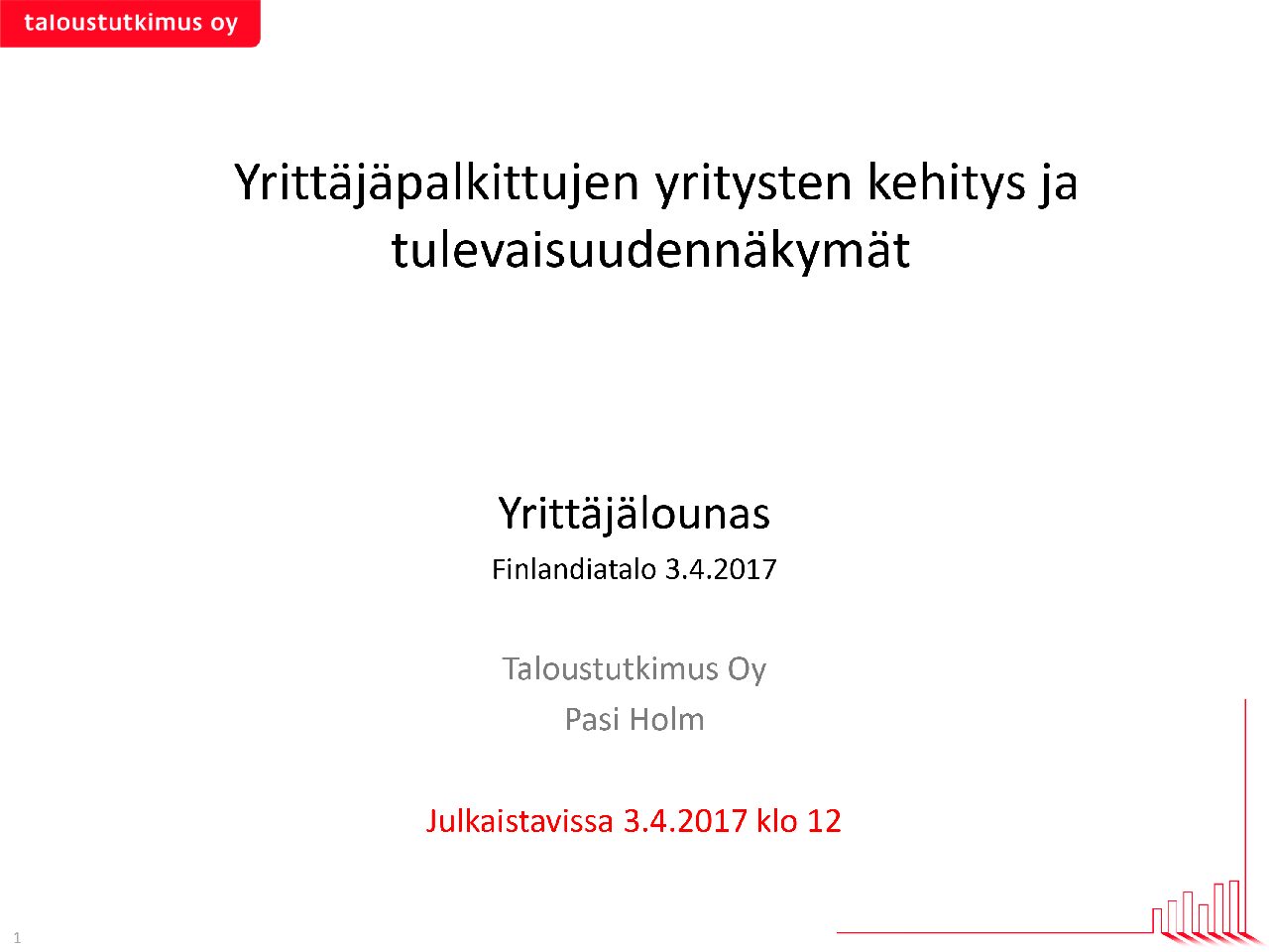 3.4.2017 Yritysten suurimpana huolenaiheena EU-alueen hidas talouskasvu Valtakunnallisen yrittäjäpalkinnon saaneet yritykset pitävät merkittävimpinä liiketoimintaan vaikuttavina seikkoina EU-alueen hidasta talouskasvua, työehtojen…