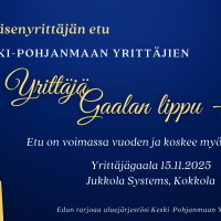 Uuden jäsenyrittäjän etu: Keski-Pohjanmaan Yrittäjien Yrittäjägaalan lippu -50%. Keski-Pohjanmaan Yrittäjien Yrittäjägaala on vuoden huipennus, jossa jaetan maakunnalliset yrittäjäpalkinnot. Tapahtumassa yhdistyvät…