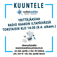 Kevään aikana Radio Kaakon taajuudella puhuttiin yrittämisestä ja koronan vaikutuksista yrityksiin. Kuuntele kaikki neljä lähetystä jälkikäteen. Paljon mielenkiintoista asiaa.