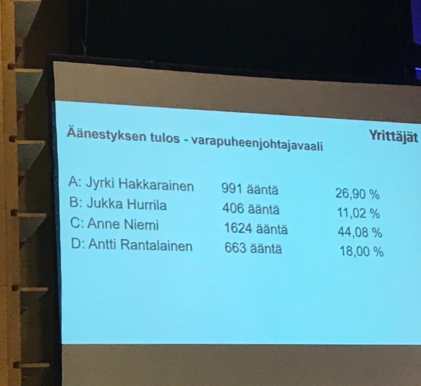 2022 vuoden liittokokouksessa olin ehdolla Suomen Yrittäjien puheenjohtajaksi. Ensimmäisellä kierroksella saamani äänimäärä jäi vain 72 äänen päähän ehdottomasta ääntenenemmistöstä. Mitä nöyrin kiitos siitä kaikille äänestäjilleni!