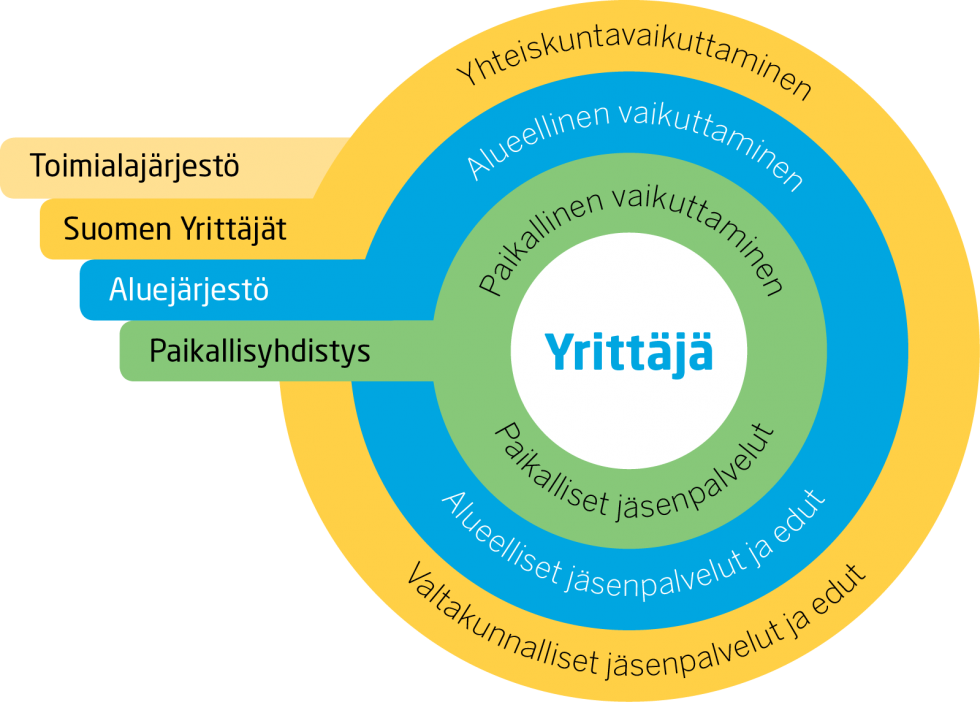 Kun liityt yrittäjäjärjestöön, liityt samalla paikallisyhdistykseen, aluejärjestöön (Etelä-Savon Yrittäjät) ja keskusjärjestöön (Suomen Yrittäjät). Vaikutamme päätöksentekoon paikallisesti kunnissa sekä maakunnallisesti ja valtakunnallisesti, jotta sinun on mahdollisimman sujuvaa yrittää. Suomen Yrittäjät vaikuttaa myös Brysselissä.