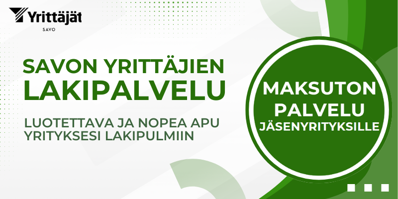 Jäsenenämme saat juuri Sinua hyödyttäviä palveluita yritystoimintasi tueksi. Tarjoamme maksutonta neuvontaa, ajantasaista tietoa, koulutuksia sekä muita rahanarvoisia jäsenetuja. Teemme joka päivä töitä savolaisen yrittäjän parhaaksi. Eikä pelkästään siksi, että yrittäjämme pärjäisivät, vaan siksi, että koko alueemme ja Suomi pärjäisi.