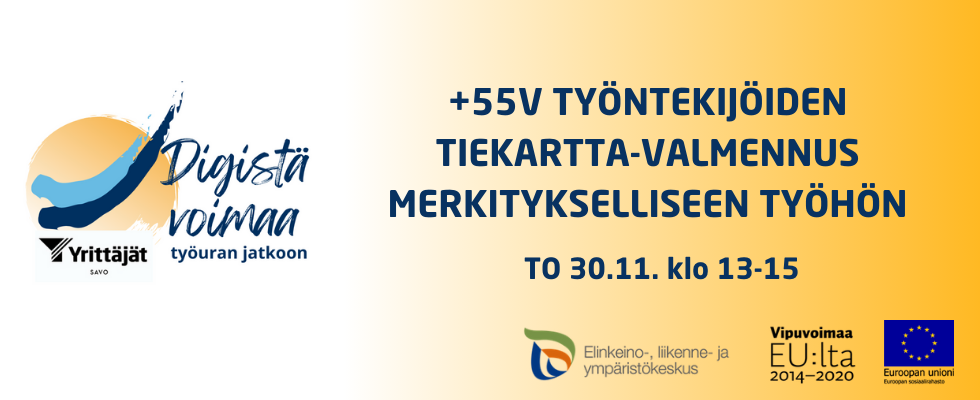 Kohderyhmä: Pohjoissavolaisten yritysten ja organisaatioiden +55v-työntekijät, itsenäisesti ilmoittautuneet +55-työntekijät