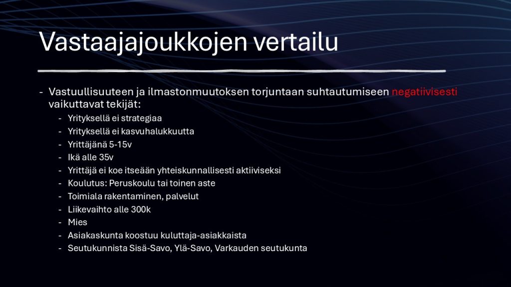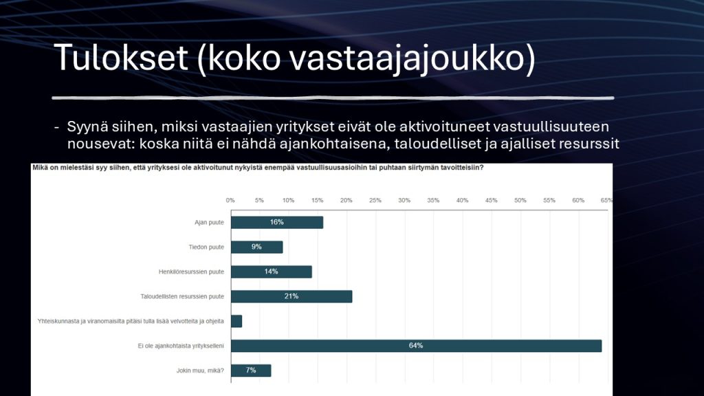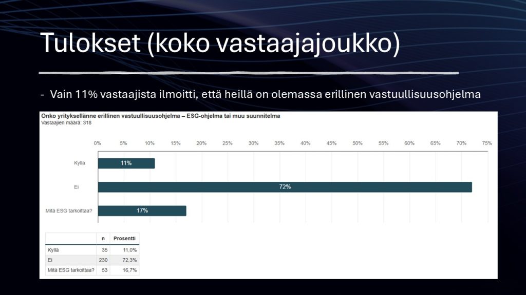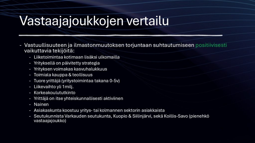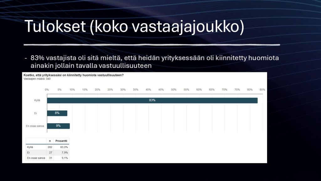 Pohjois-Savon alueen vastuullisuustyön suunnannäyttäjät & I yrityskyselyn tulokset