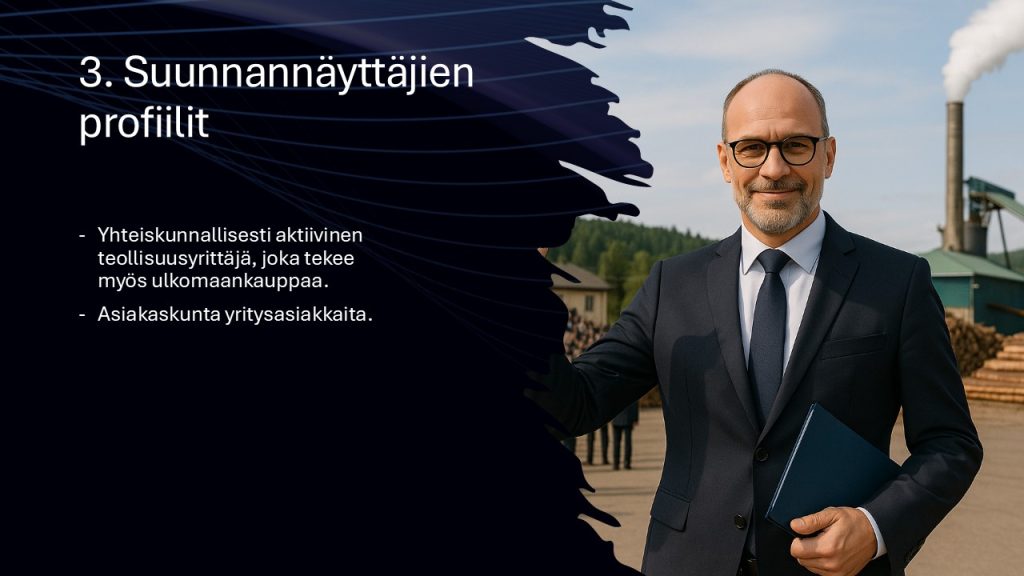 I Yrityskyselyn perusteella on koostettu viisi eri suunnannäyttäjäprofiilia, jotka ovat koostettu yhdistelemällä perustuen vastuullisuustyöhön positiivisesti vaikuttavien tekijöitä: