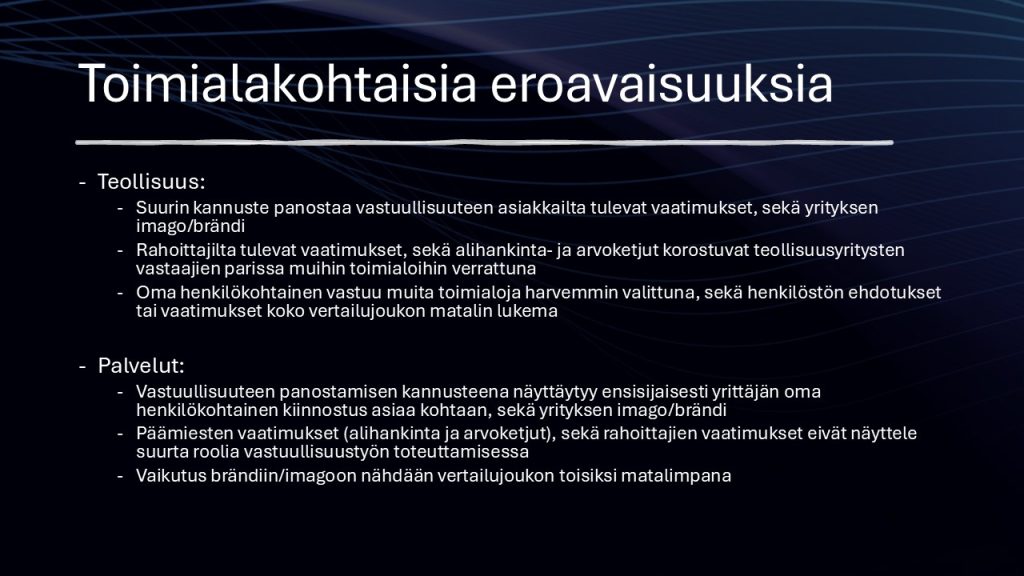 Toimialakohtaiset erot vastuullisuustyön toteuttamisessa