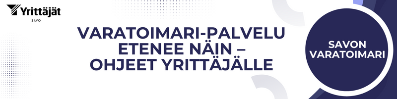 Savon Varatoimari-konsepti on uusi, luottamuksellinen palvelu tilanteissa, joissa yrittäjän omat resurssit syystä tai toisesta eivät riitä. Jos omasta yrityksessä tai lähipiirissä ei ole henkilöitä, jotka voivat hypätä yrittäjä-toimitusjohtajan puikkoihin, Varatoimari tarjoaa ratkaisun.