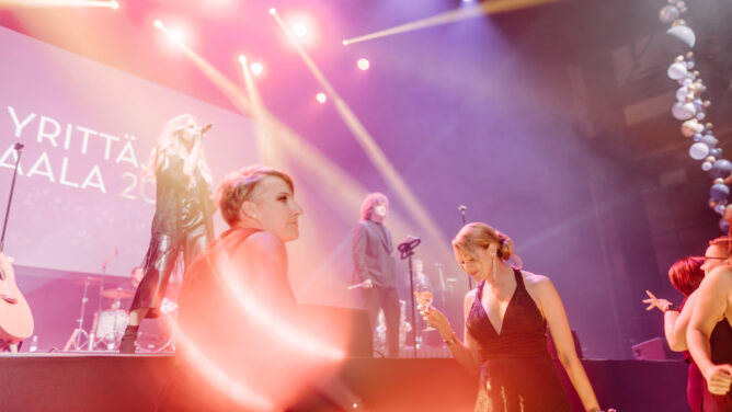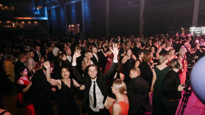 Osallistumismaksu sisältää alkumaljan, kolmen ruokalajin gaalaillallisen ruokajuomineen, vaatesäilytyksen, viihdyttävän ohjelman ja Logomo-salin upeat puitteet.