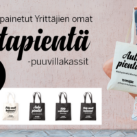 Auta pientä! -kangaskassi muistuttaa arjen valinnoista. Nyt jos koskaan kannattaa tukea pienyrittäjiä.