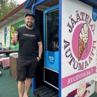Kuopiossa sijaitsevan Cafe Väinön yrittäjä Allu Koskinen sai idean jäätelöautomaatista Aasian-reissuillaan.