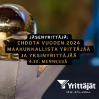 Tunnetko Keski-Pohjanmaan Yrittäjien alueella jäsenyrittäjän, joka on menestynyt ja ansaitsee tulla palkituksi?Etsimme yrityksiä ja yksinyrittäjiä, jotka ovat tehneet vaikuttavaa työtä…