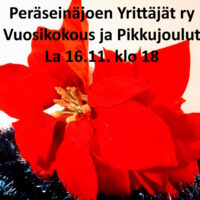 Peräseinäjoen Yrittäjät ry:n vuosikokous ja pikkujoulut järjestetään lauantaina 16.11. klo 18 alkaen Maatilamatkailu Välimaalla.
