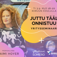 Julkaistu: 30.8.2019 | 9:07 Someron kaupunki ja Someron Yrittäjät ovat kutsuneet Somerolle Yrittäjäviikon pääpuhujaksi Saimi Hoyerin. Hän on yksi Suomen…