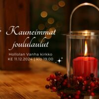 Lämpimästi tervetuloa viettämän perinteistä Kauneimmat joululaulut -yhteislauluiltaa keskiviikkona 11.12.2024 klo 19.00 tunnelmalliseen Hollolan Vanhaan kirkkoon. Tilaisuudessa mukana myös Lahden Kamarikuoro.…