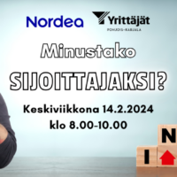 Aika: Keskiviikkona 14.2.2024 klo 8-10Paikka: Nordea Bank, Siltakatu 10, 80100 Joensuu Ilmoittaudu tästä! Tervetuloa Minustako sijoittajaksi? -aamuun Nordealle! Tule kuulemaan, kun asiantuntija…