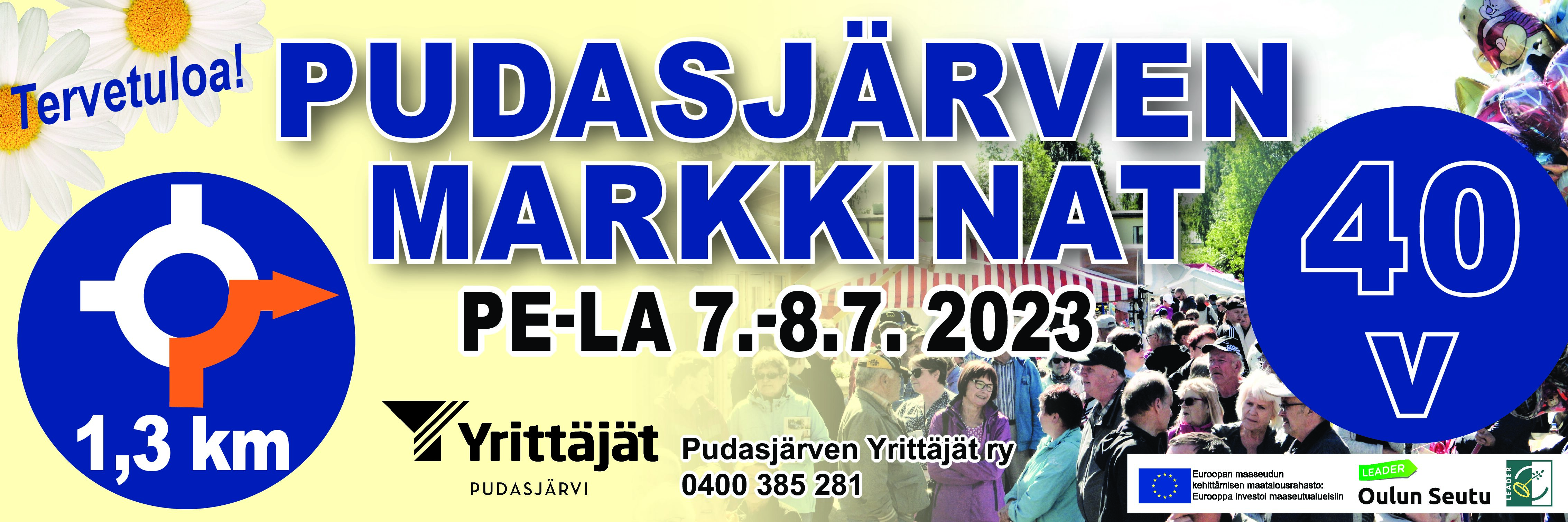 Pudasjärven 40. markkinat Pe 7.7. klo 9-18 ja la 8.7. klo 9-16 torilla. Asiakkaille ei sisäänpääsymaksua. Myyjille paikkamaksu erillisen hinnaston…