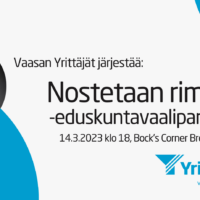 Vaasan Yrittäjät järjestää:Nostetaan rimaa -eduskuntavaalipaneeli Yrittäjä, tule Vaasan Yrittäjien eduskuntavaalipaneeliin Bock’s Corneriin tiistaina 14.3. klo 18! Paikalla on hyvä kattaus…