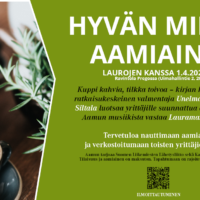 Tervetuloa nauttimaan Hyvän mielen aamiaista Laurojen kanssa! • pe 1.4. klo 8:30• Ravintola Prego, Uimahallintie 2, Kaarina• ilmoittaudu tästä 28.3.…