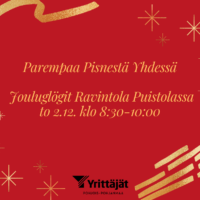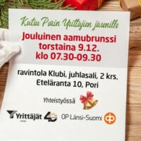 KUTSUPorin Yrittäjien jäsenille Tervetuloa virittäytymään joulun tunnelmaan jouluisen aamubrunssin merkeissätorstaina 9.12. klo 07.30 alkaen (-klo 09.30) ravintola Klubi, os. Eteläranta…