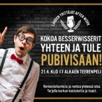 Lahden Yrittäjien After Work Yrittäjät Pubivisa perjantaina 21.4. klo 17 alkaen Teerenpelissä. Tule testaamaan tietojasi yrittäjän elämästä Yrittäjät Pubivisassa! Mitään…