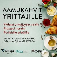 Tervetuloa Kahvila Localeen herkulliselle aamiaiselle ja vaihtamaan kuulumisia Porin Yrittäjien kanssa, samalla tutustuen Prizztechin palveluihin. Ohjelma: Aamupala on tarjolla 7.45…