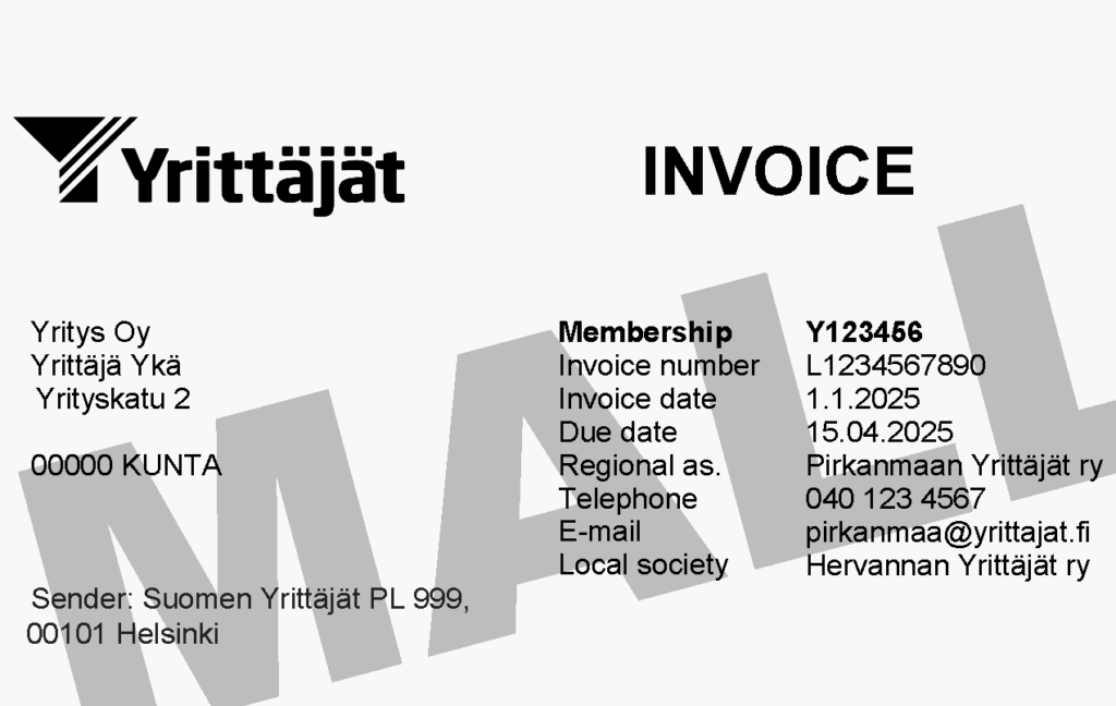 The invoice’s delivery method is selected when you join. You may choose between e-invoice, email invoice or paper invoice. If the membership fee is paid as an online payment in conjunction with joining, the invoice will be sent in paper format in the future.