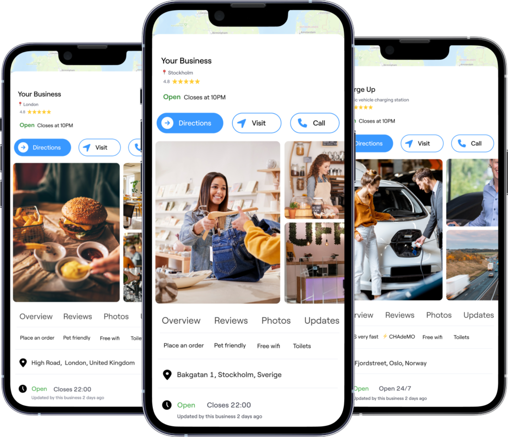 - Päivitä yritystietosi helposti yhdestä paikasta – muutokset päivittyvät automaattisesti yli 20 kanavaan.