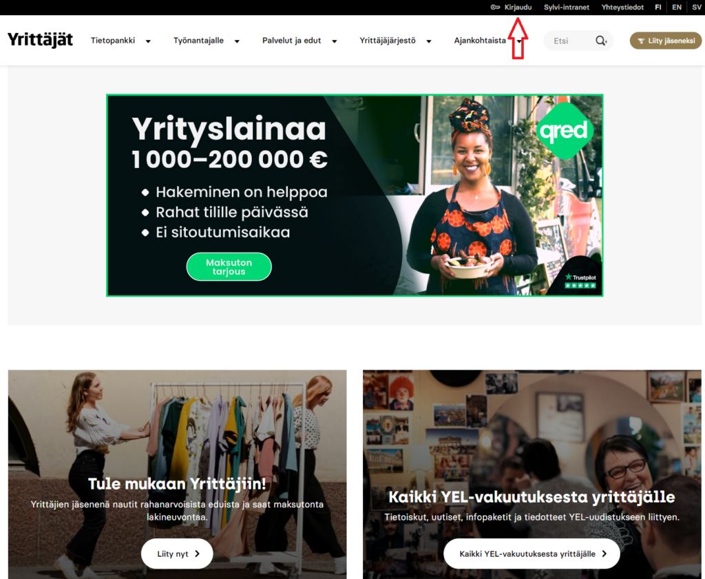 Kirjaudu jäsenpalveluun osoitteessa app-staging.client-yrittajat.hion.dev/kirjaudu.