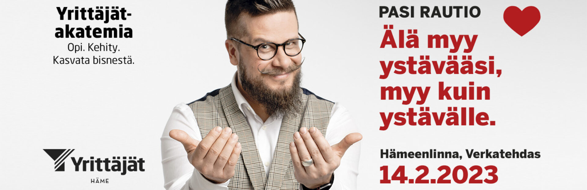 Tilaisuuden järjestää Hämeen Yrittäjät. Lisätietoja antaa: palvelupäällikkö Pauliina Hirviniemi, pauliina.hirviniemi(at)yrittajat.fi
